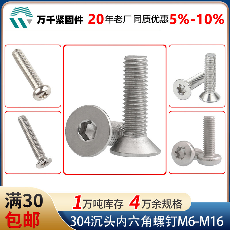 メーカー直供304ステンレス沈頭内六角ねじm6m8m10m12m16平頭内六角ねじ