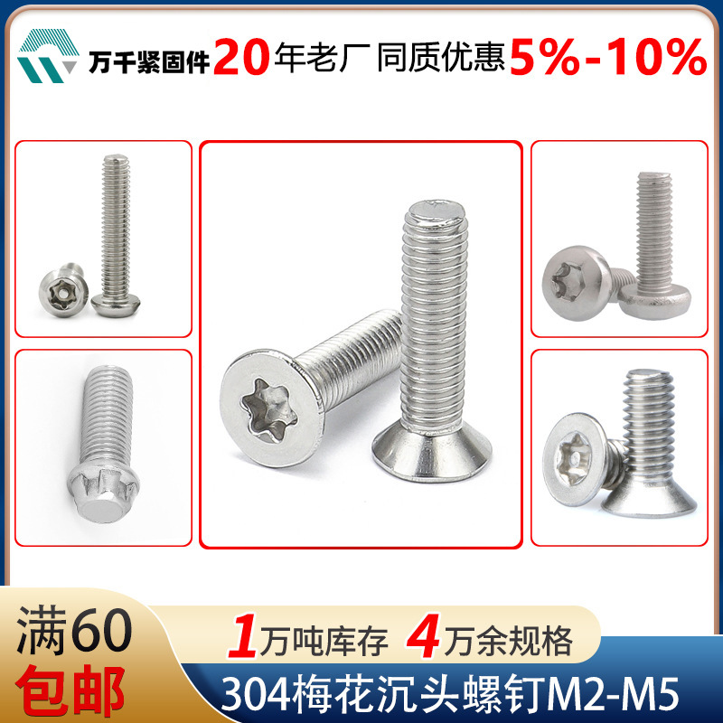 304ステンレス鋼盗難防止ネジM3M4M5M6梅花穴皿頭ネジ機械ネジねじ盗難防止緩み止め