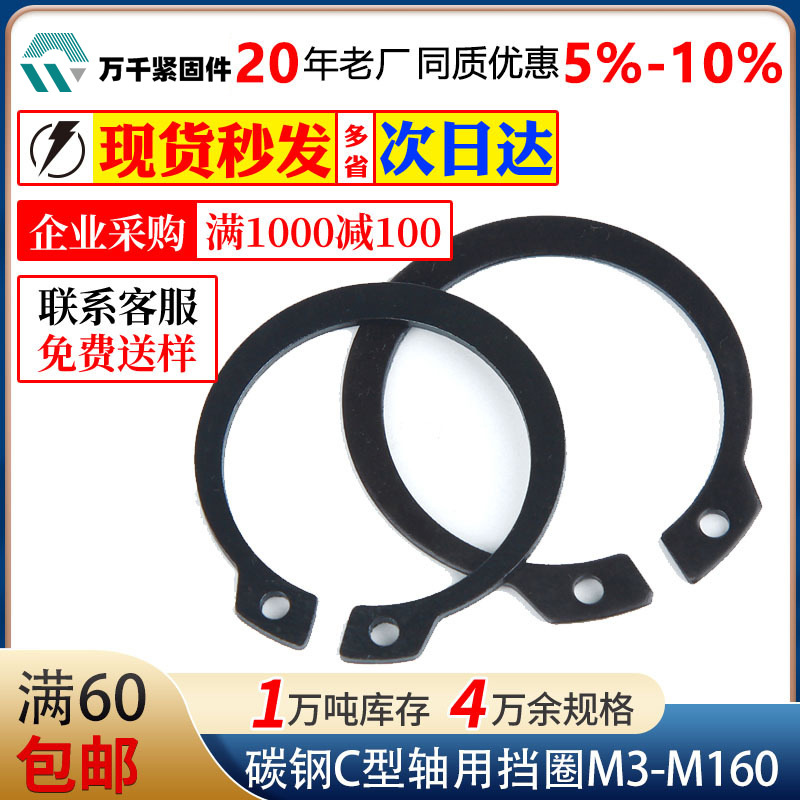 炭素鋼黒色gb894.1c型バネ弾性クリップc型軸用止め輪M3M4M5M6M7M8M9-M160