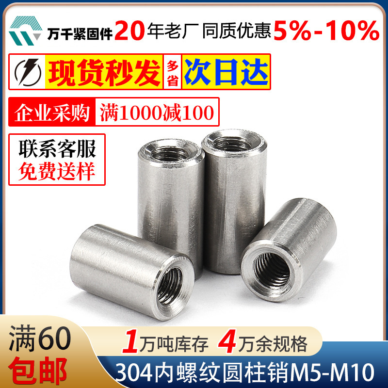 メーカースポット304ステンレス内ねじ円柱ピン内ねじピン位置決めピンM5-M10