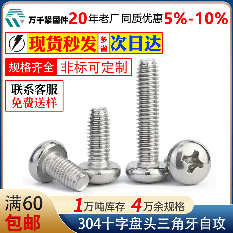 304ステンレス三角歯ねじ十字丸頭タッピングロックねじ盤頭三角歯タッピングm3m4