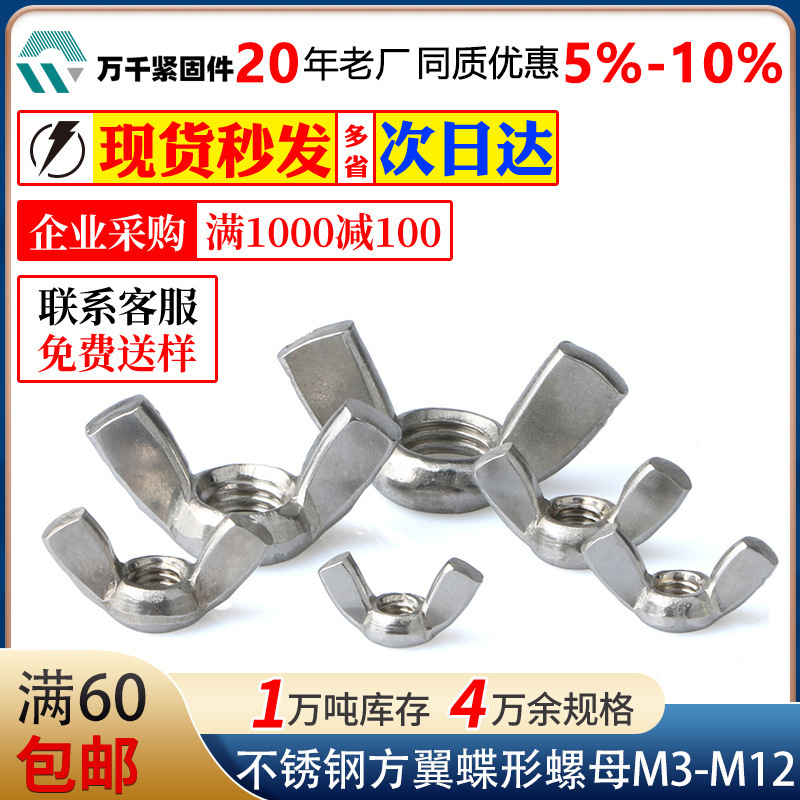 304/316ステンレス角翼蝶形ナット手回しねじ帽子M3M4M5M6M8-M12羊角ナット