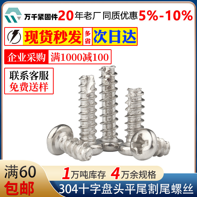 メーカー直供304ステンレス十字盤ボルトm3m4平尾切りタッピングねじ