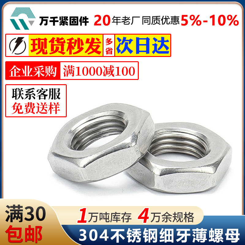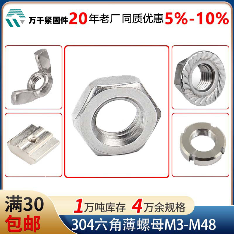 304ステンレスフラット薄ナット薄型ネジキャップM3M4M6M8M10M12-M48六角薄ナット