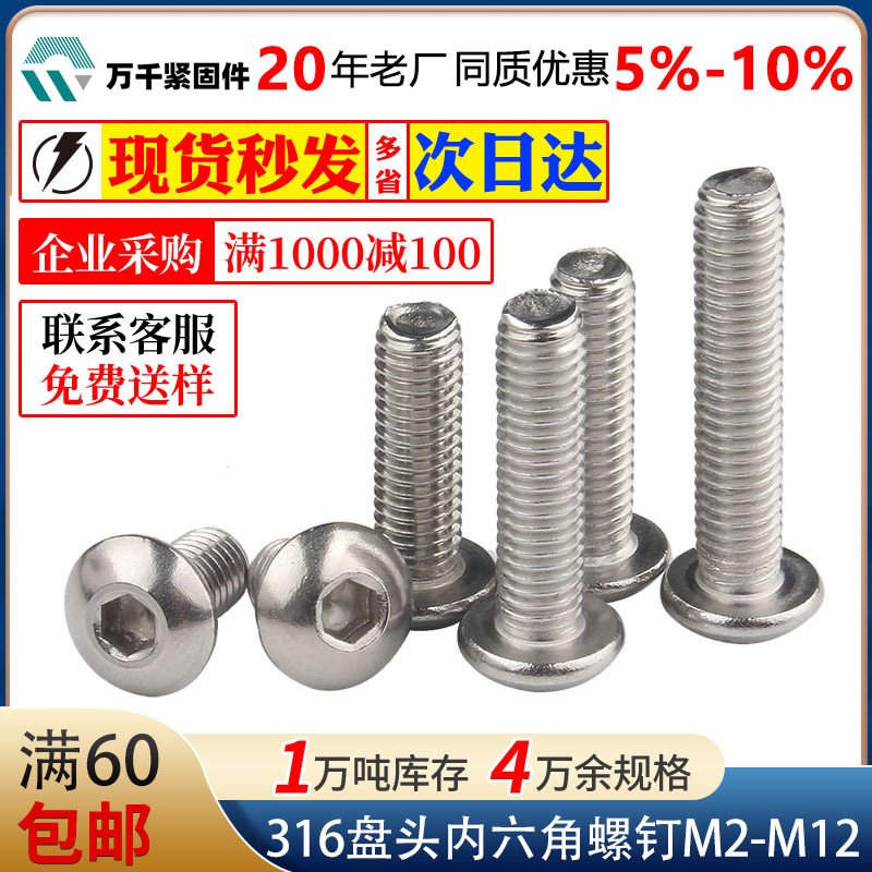 316ステンレス半円頭六角ねじボルト盤頭に六角穴付きねじm2.5m3m 4m 5m 6