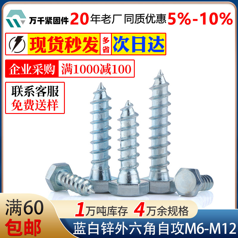 メーカー直供炭素鋼青白亜鉛外六角タッピングねじm 6m 8m 10m 12外六角沈頭木ねじ