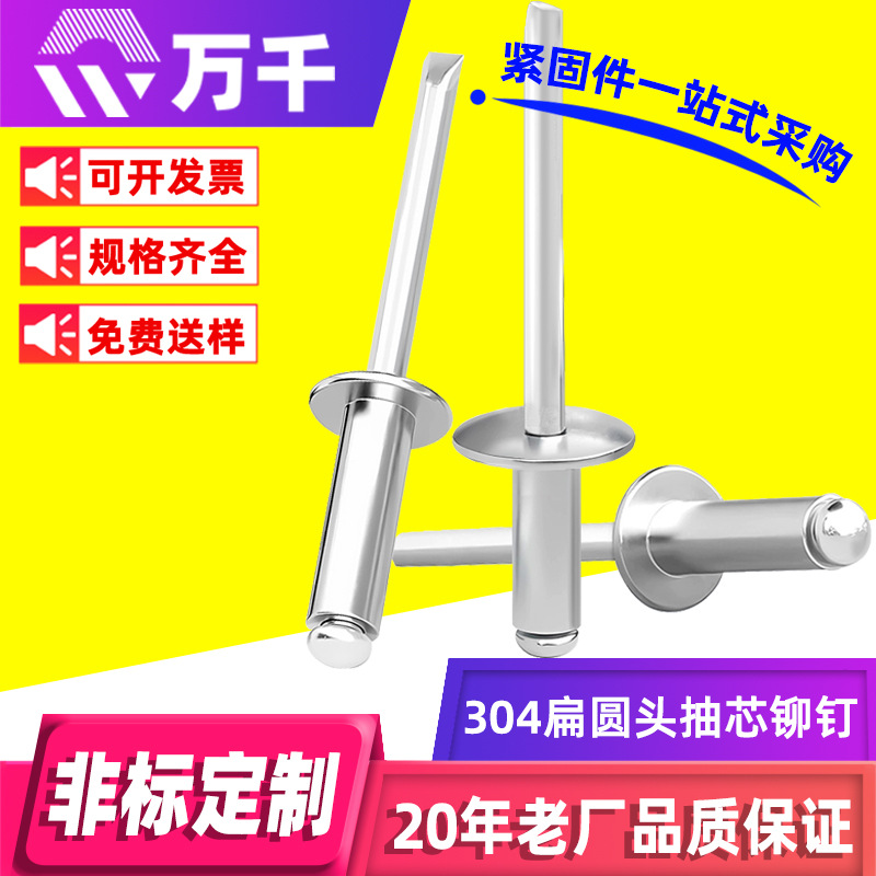 スポット304ステンレス鋼全鋼/半鋼コアリベットM3M4-M6開口型平円ヘッドコアリベット