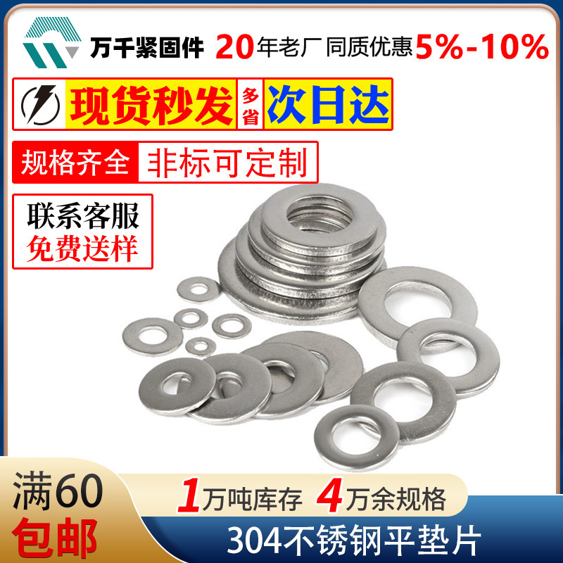 304ステンレススペーサー金属平パッドを大きくして、平ワッシャのネジ中間子金属スペーサーM1.6-M7を厚くします。