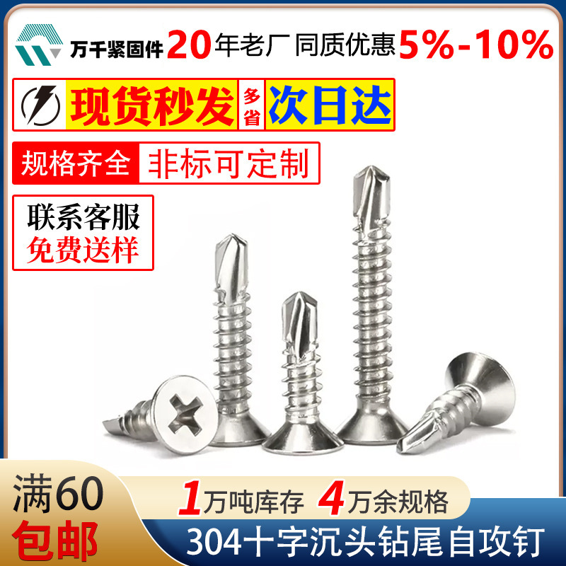 304ステンレス十字沈頭ドリル尾タッピングねじm 3.5m 4.2m 4.8沈頭アリ糸タッピング釘