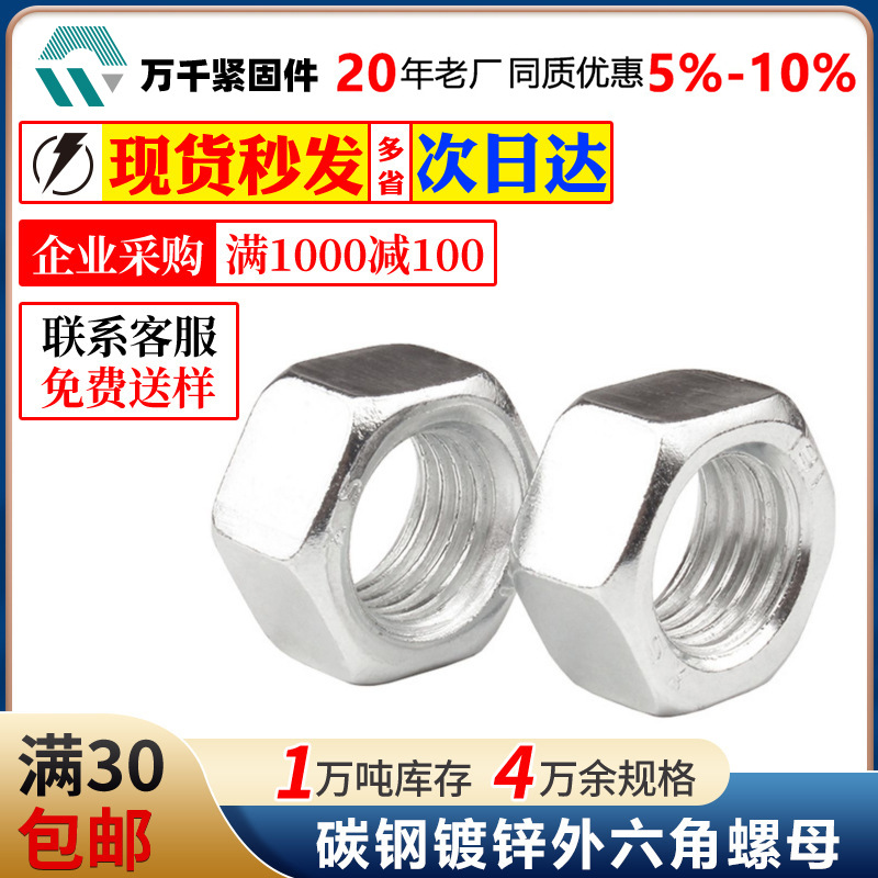 メーカー直供炭素鋼亜鉛メッキ六角ナット六角ナット外六角ねじ帽M2-M24現物