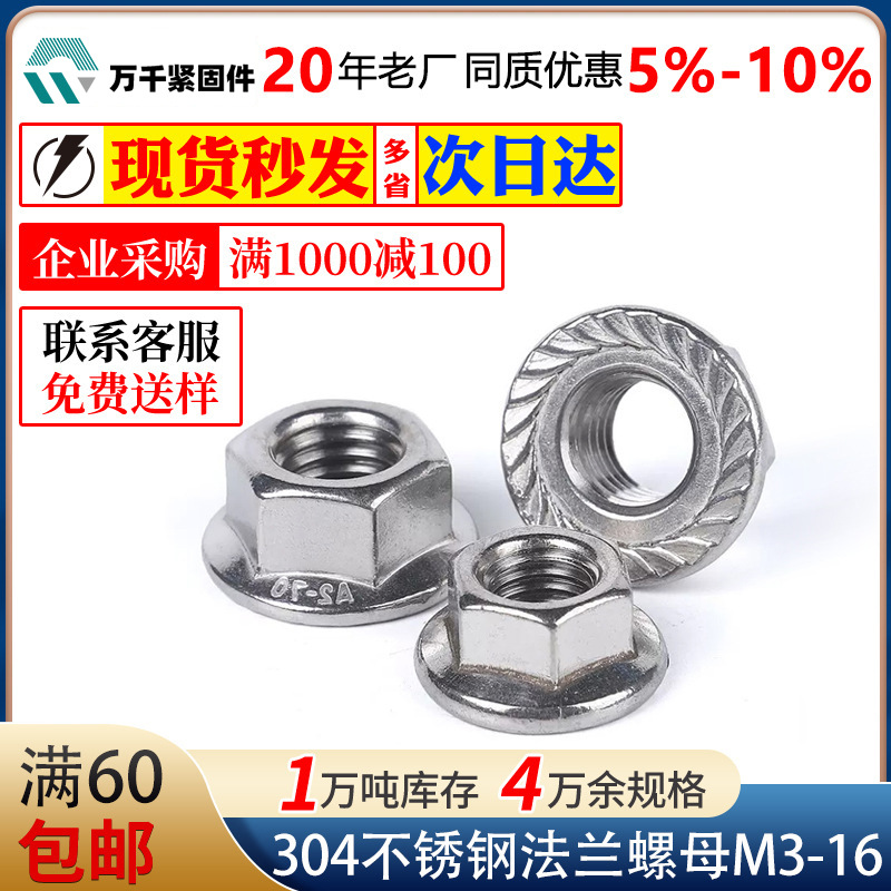 304ステンレスフランジナット緩め防止ナットm3m4 m 5m 6m 8六角フランジナット歯付きナット