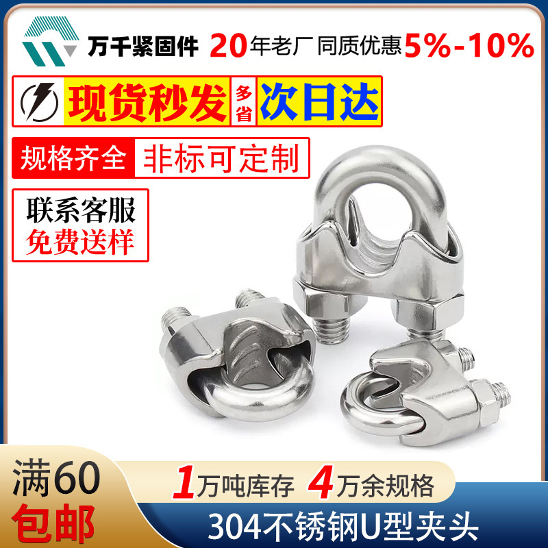 304ステンレス鋼ワイヤロープチャックロッククリップu型クリップ