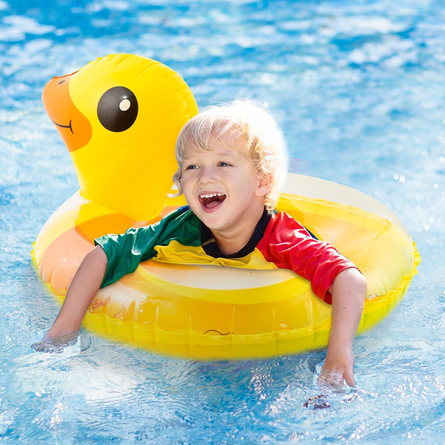 Pvc子供の水泳輪の小さい黄色のアヒルは空気を入れて水の上で赤ちゃんの救命輪の子供の水上で浮き輪に乗ります。