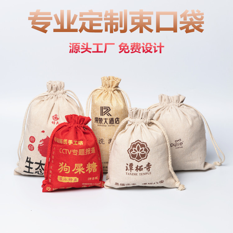 カスタム模造麻束口小酒袋包装ギフトロープ広告包装袋カスタム印刷ロゴ