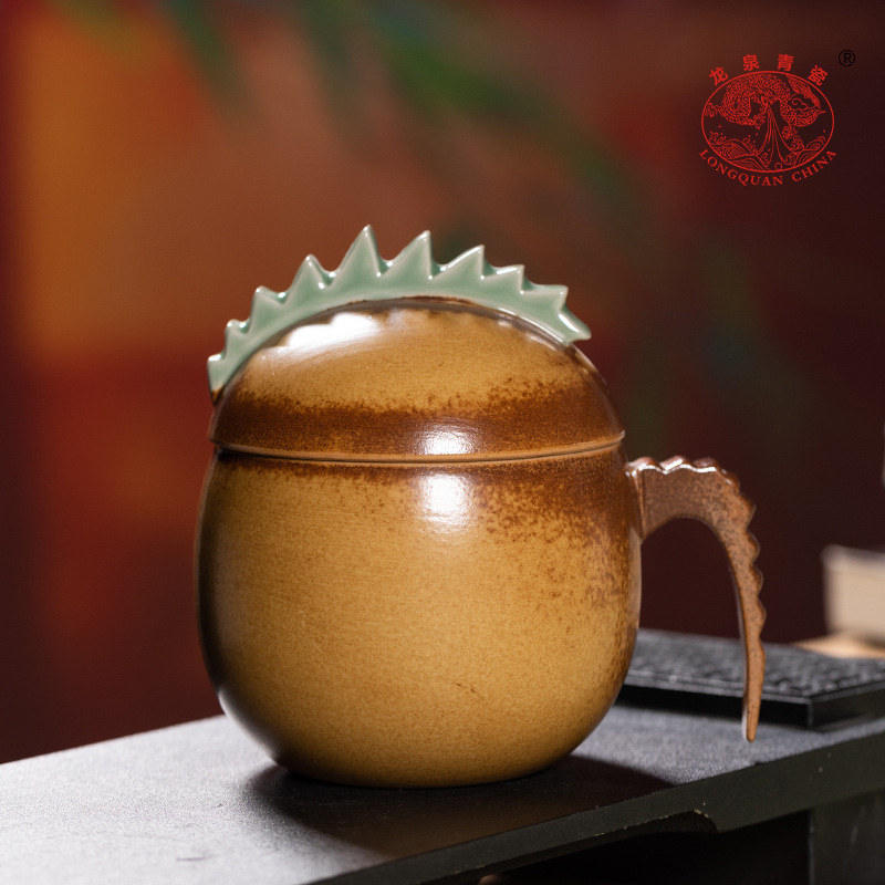 竜泉青磁のオフィスカップ高颜値創意マグカップ単杯陶磁器柴焼コーヒーカップ