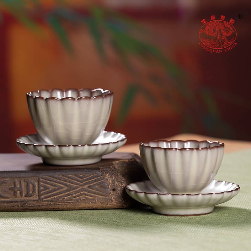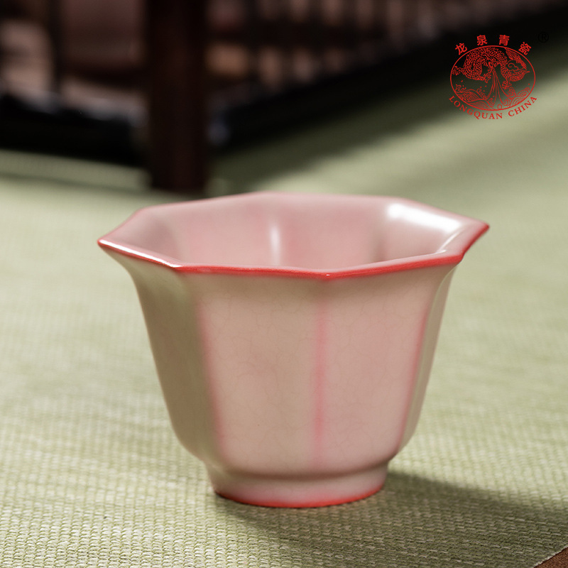 竜泉青磁の創意的な手作りの主人の杯の高い顔の価値の工夫の杯の1杯の陶磁器の赤いタイヤの花びらのお茶の杯