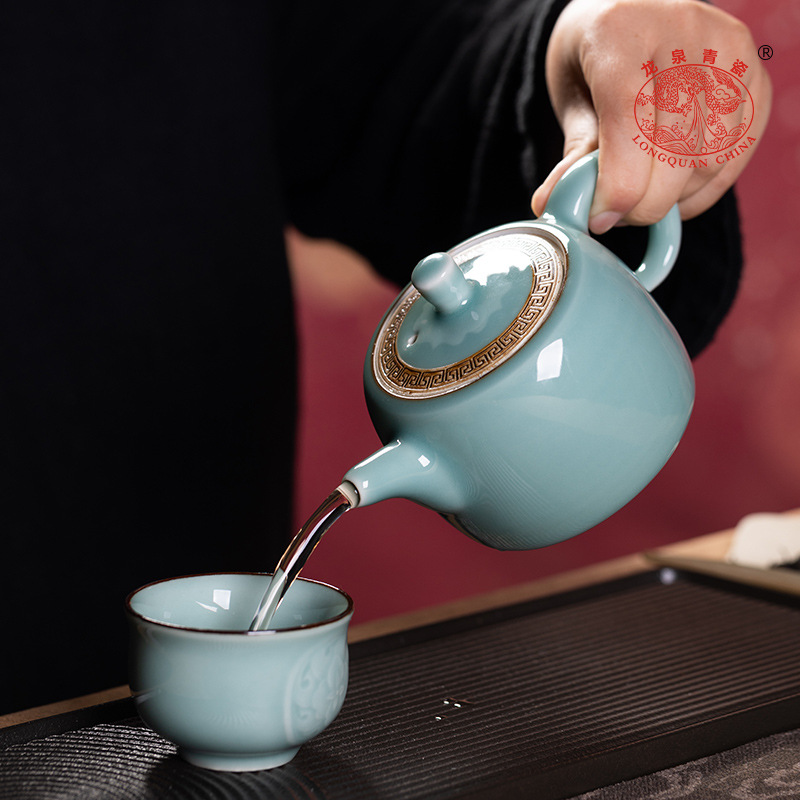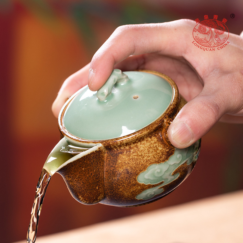 竜泉青磁創意手作り壺家庭用濾過泡ティーポット陶磁器中国式高級工夫茶器茶器