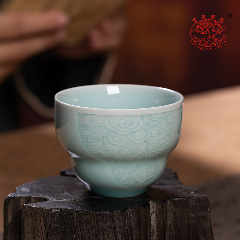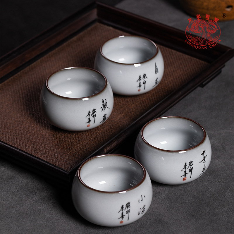 竜泉青磁家庭用工夫茶道具手作り主人杯単杯陶磁器中国式汝窯品茗杯茶碗