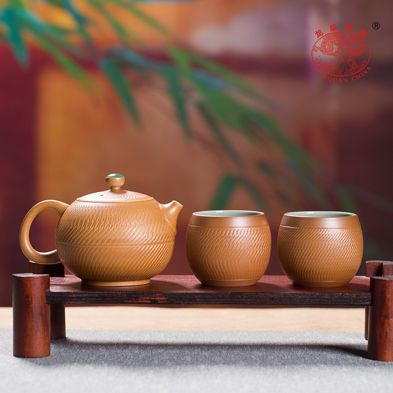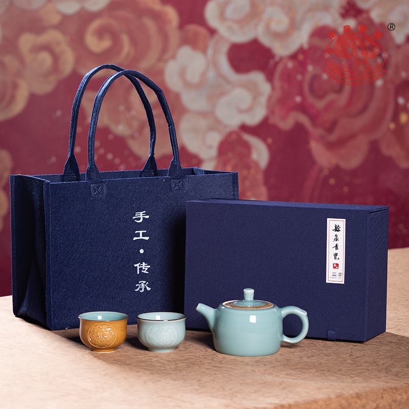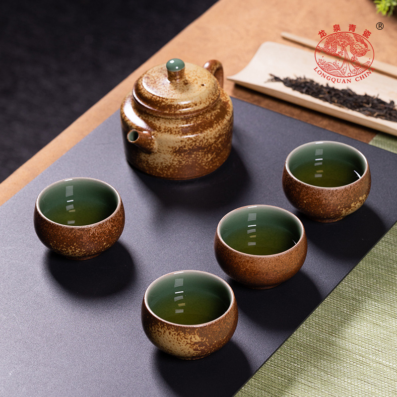 竜泉青磁柴焼窯変一壺四杯の工夫茶器陶磁器高級ティーポット旅行セット