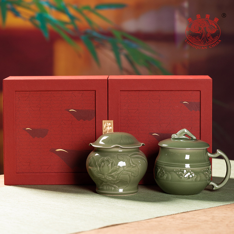 竜泉青磁茶カップ家庭用マグカップ飲水カップ陶磁器茶葉缶セットオフィス年越しギフトボックス