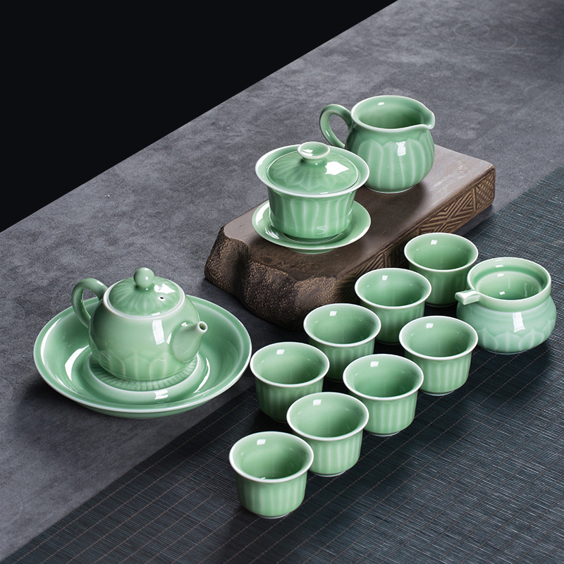 竜泉青磁の創意中国式手作り蓮茶器セット陶磁器家庭用接客工夫茶器ギフトボックス