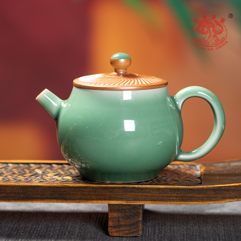 竜泉の青磁の純粋な手の創意の跳刀のティーポットの陶磁器の濾過壺の家庭用中国式の工夫の茶器はティーポットを浸します。