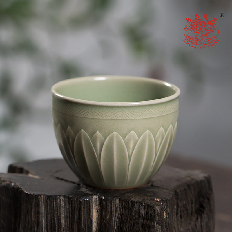 竜泉青磁胡建勇純手作り主人杯単杯陶磁器品茗杯蓮紋茶杯茶碗ギフトボックス
