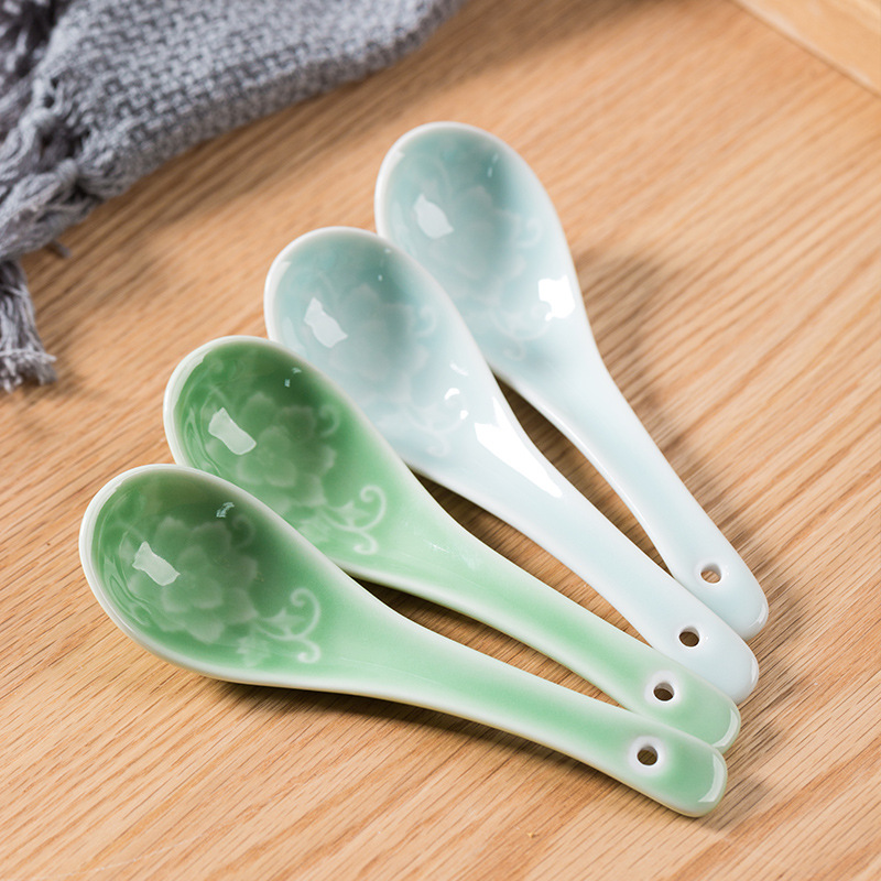 竜泉青磁器の小さいスプーンの家庭用の長い柄のスプーンのスープの陶磁器の梅の花の小さいスプーンのホテルの麺の店はスプーンを飲みます。