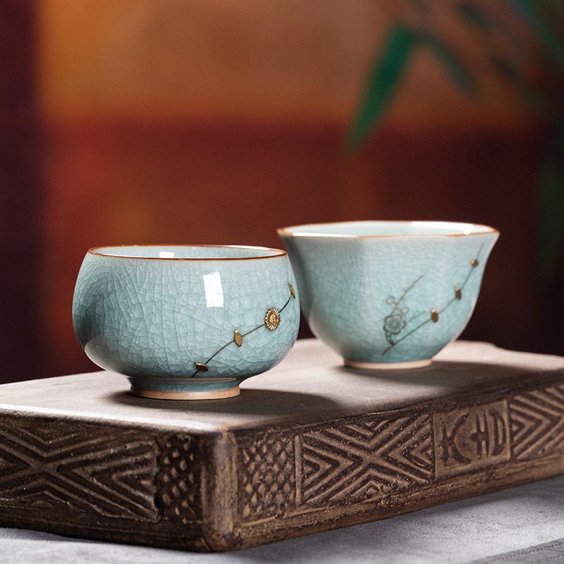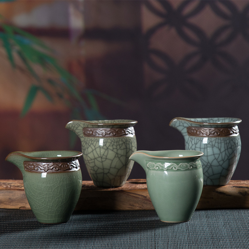 竜泉の青磁の兄の窯の氷の割れる工夫の茶器の部品の公道の杯の陶磁器の家庭用は茶器の均等な杯のお茶の海を分けます。