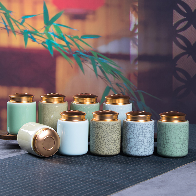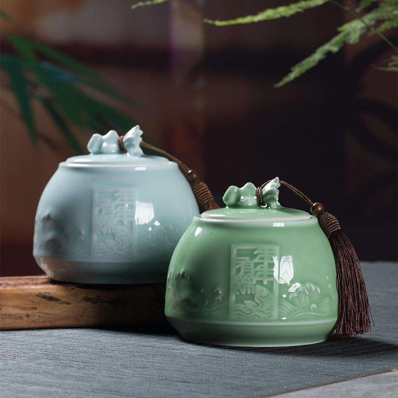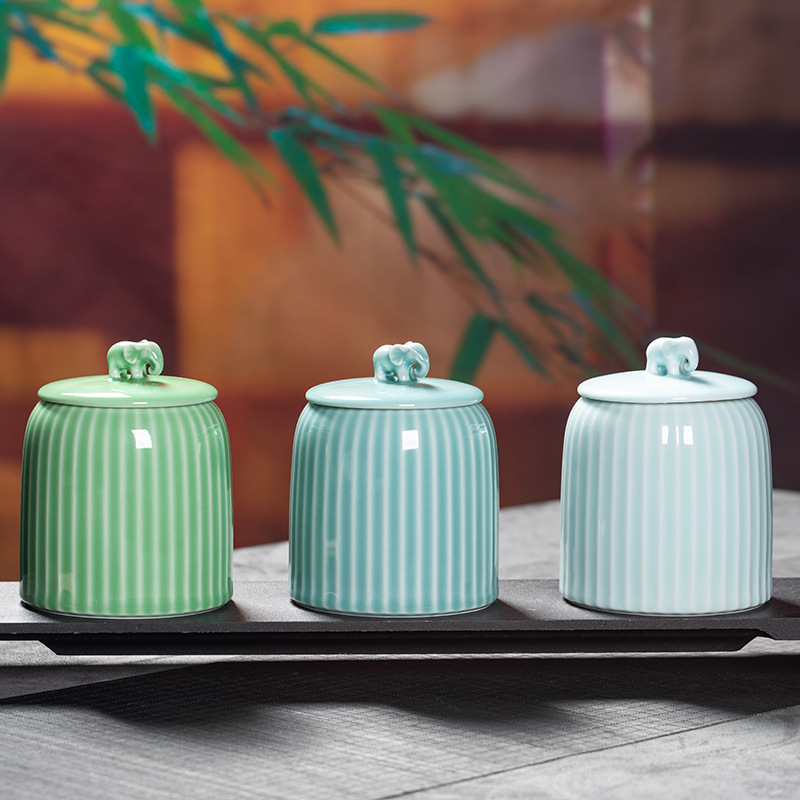 竜泉青磁創作小サイズ茶葉缶密封缶陶磁器貯蔵缶防湿紅茶プーアル茶収納缶