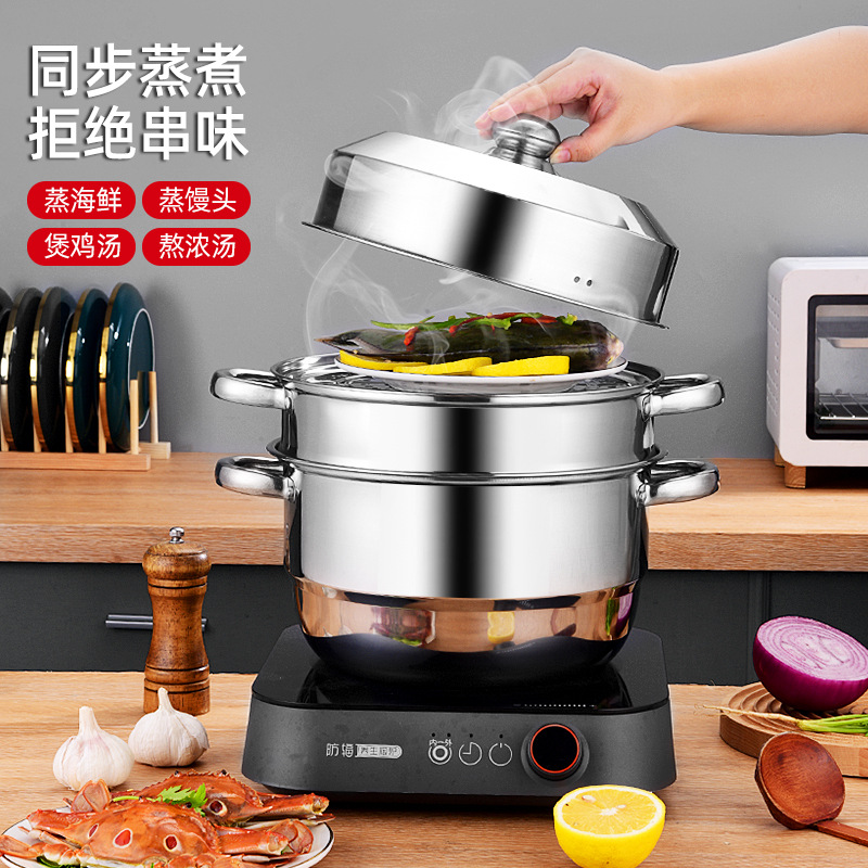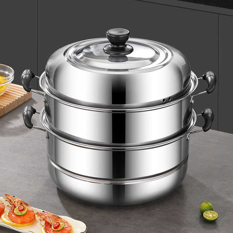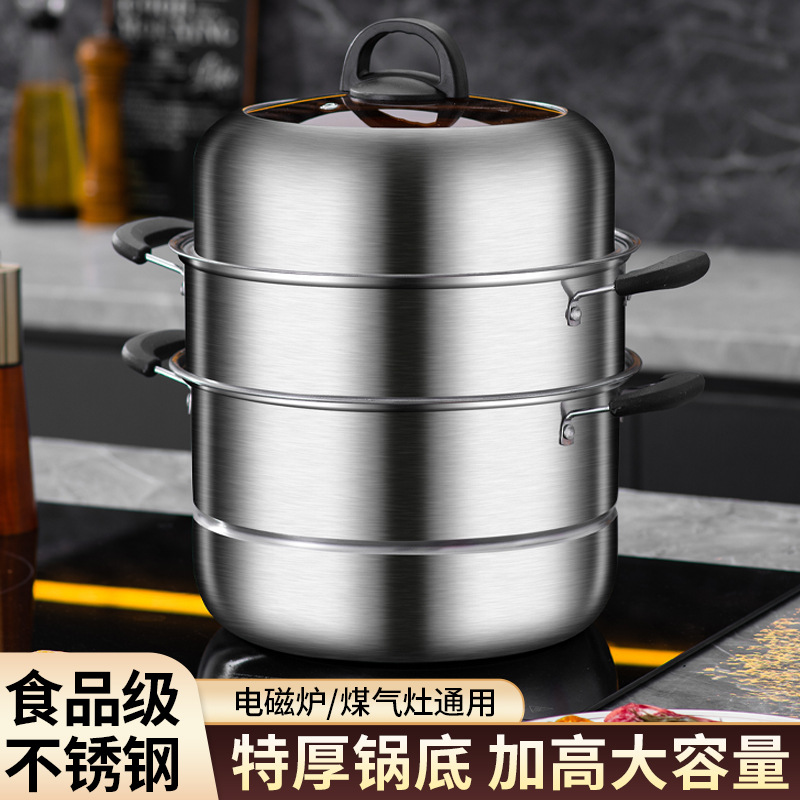 ステンレスヨーロッパ式家庭用厚手三層蒸し鍋大容量二層蒸煮スープ鍋開業プレゼント鍋具