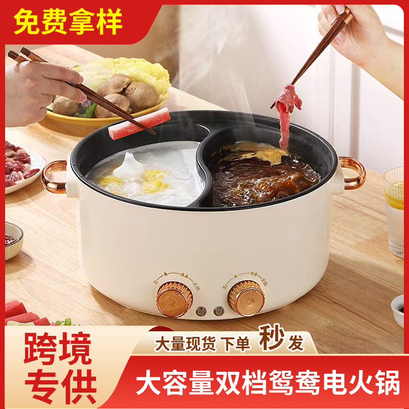 クロスボーダー鴨電気鍋家庭用ダブルコントロール一体電気炒め鍋多機能無粘電熱鍋大容量電気煮鍋