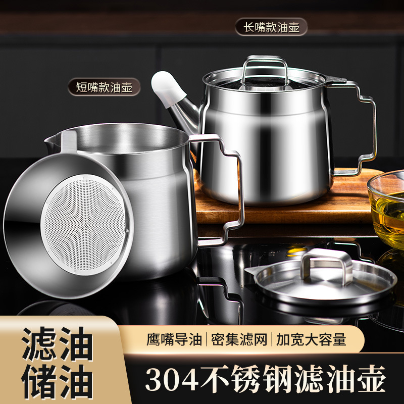 多機能オイルフィルターポット、オイル貯蔵タンク、フライヤー、304ステンレス鋼の長口オイルフィルターポット、漏れ防止オイルボトル、フィルターオイル残留物