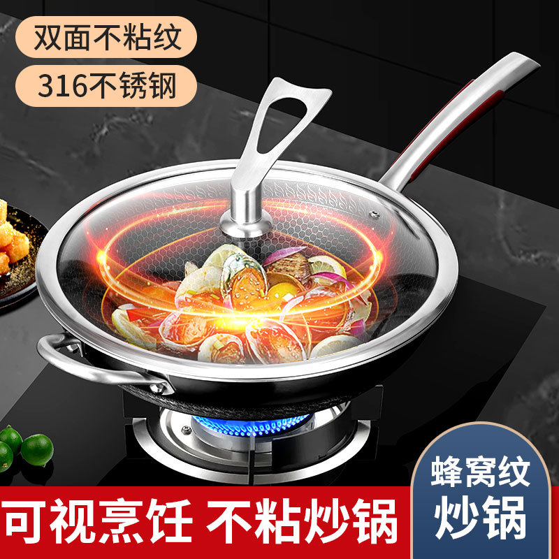 厳選された316ステンレス鋼中華鍋、両面ハニカム模様フライパン、ノンスティックフライパン、家庭用電磁調理器フライパン、調理鍋