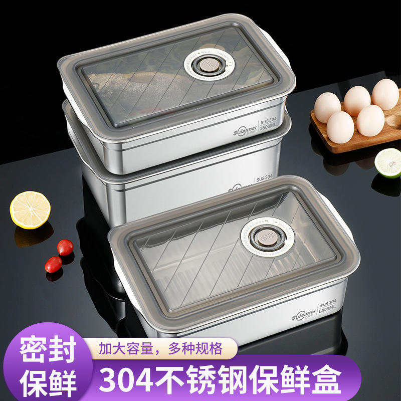 304ステンレスポータブルタッパー学生屋外大容量弁当箱シールフルーツ冷蔵庫収納ボックス