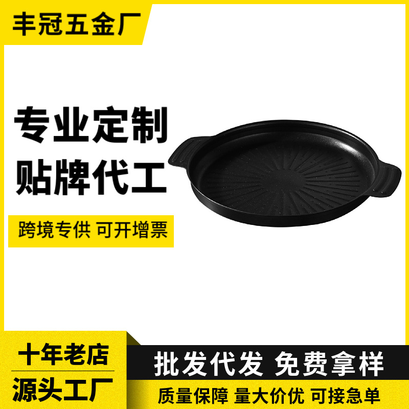 耳付きカスタマイズされた韓国製ノンスティック医療石複合底グリルパン、家庭用電磁調理器グリルパン、業務用フライパン