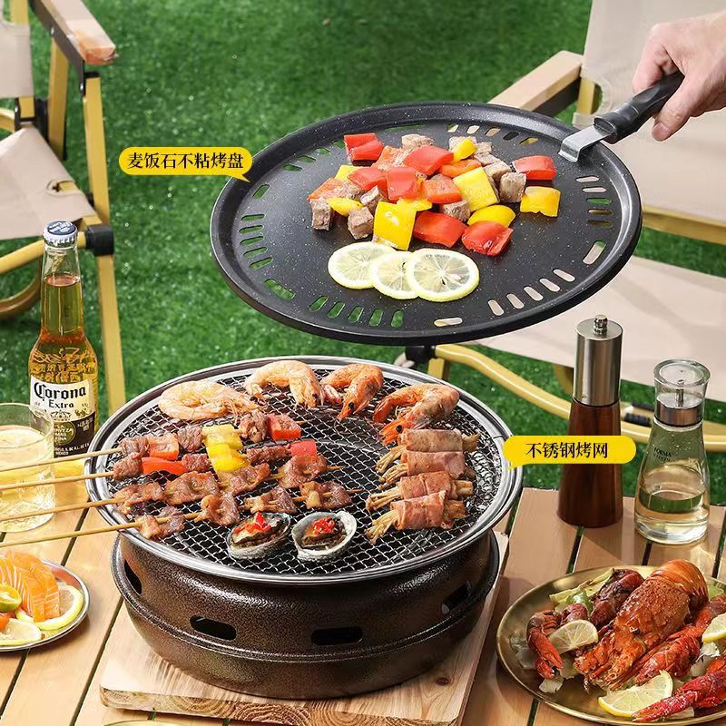 厳選ステンレス韓国式オーブン家庭用円形木炭オーブン屋外キャンプ多機能小型オーブン