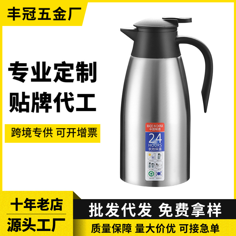 304ステンレス保温ポット真空湯たんぽヨーロッパ風コーヒーポット二重家庭用2l湯沸かし器プレゼントロゴ