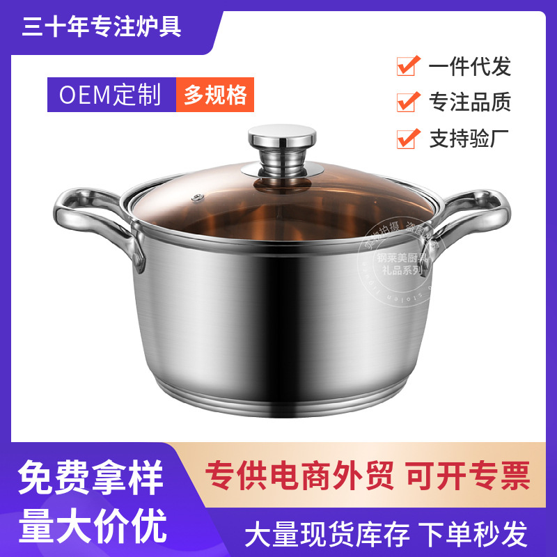 ステンレス製両耳スープポット家庭用増粘複合底大容量スープポット電磁調理器ガスストーブ平底シチューポット