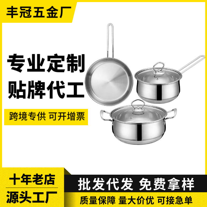 国境を越えたステンレス鍋セットキッチンセットの厚いミルク鍋スープ鍋のフライパンプレゼント3、3セットの鍋セット