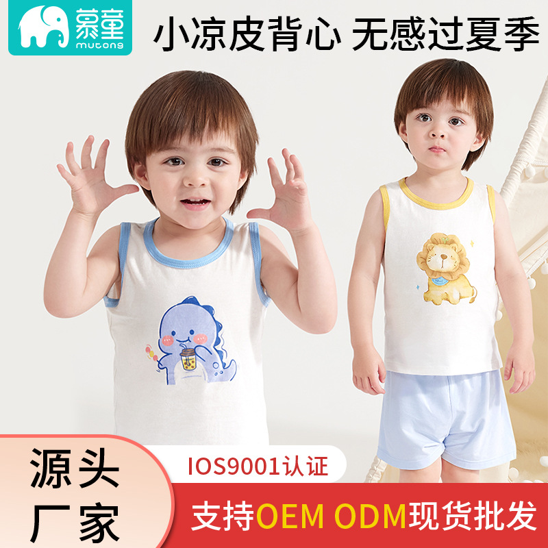メーカーの現物卸売りの子供の夏の純綿の薄い通気性のベストの赤ちゃんの漫画の動物の項のノースリーブの底のシャツ
