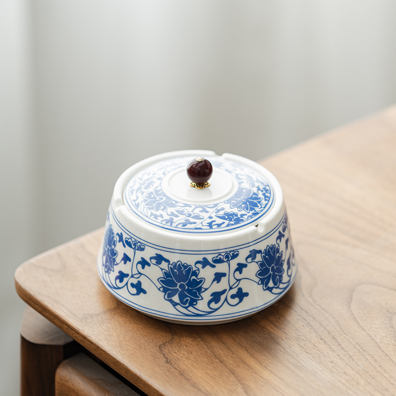 レトロ陶磁器釜冠灰皿中国式大サイズ蓋付き防風灰かめオフィス高級感高級タバコカップ