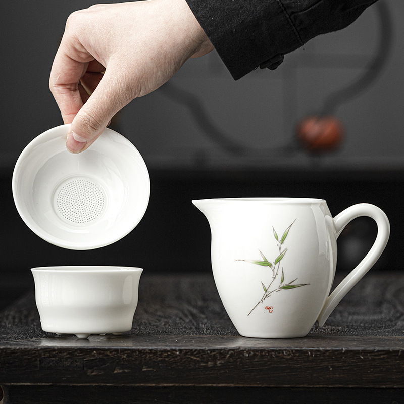 徳化羊脂玉白磁茶漏れ公道杯分茶器セット工夫茶器茶海公道分茶フィルター