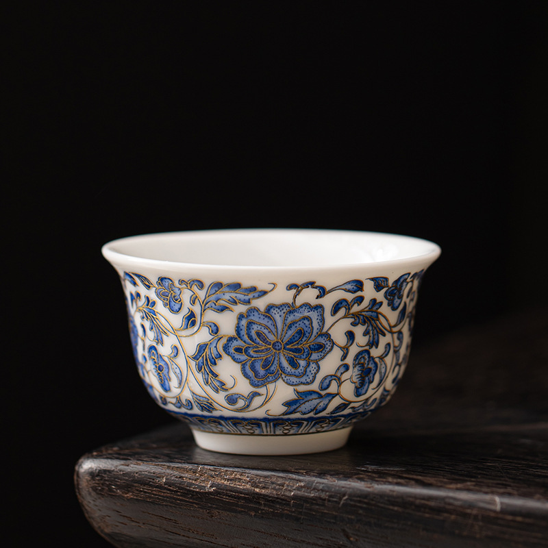 青花の花は錦のようです。中国式の家庭用お茶のコップを飲みます。
