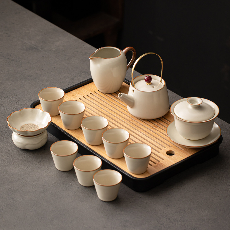 米黄汝窯提梁壺カンフー茶器セット家庭用オフィス軽豪華高級陶磁器茶器ティーポット