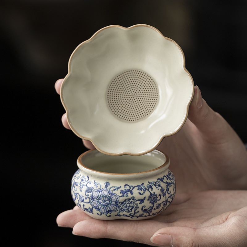 汝窯枝蓮茶漏組家庭用全磁器一体フィルタ工夫茶器陶磁器茶隔茶分離器