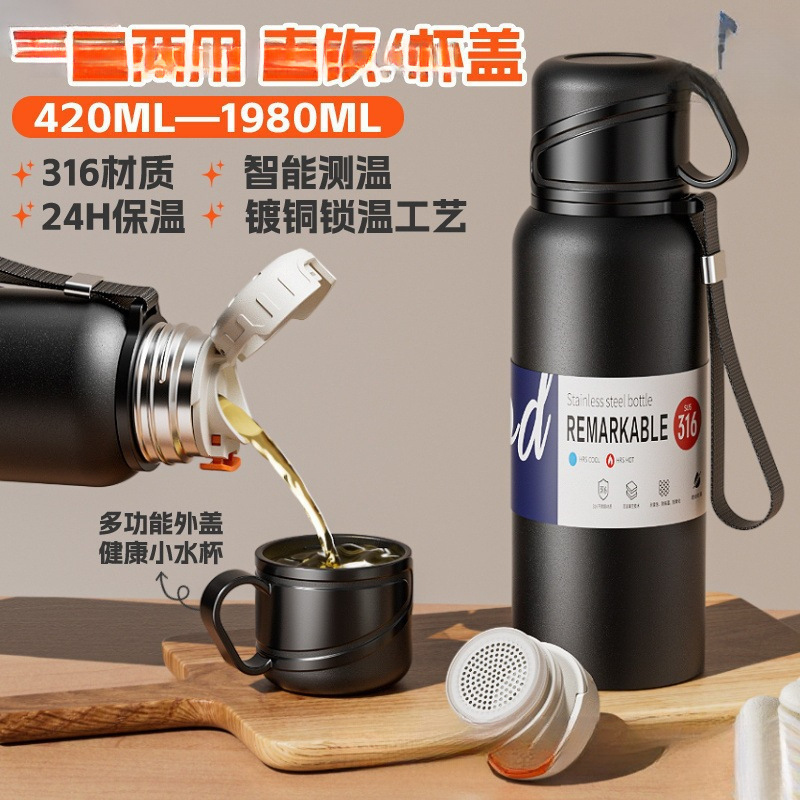 大容量双盖保温杯男女水壶不锈钢茶水分离便携车载户外泡茶杯简约