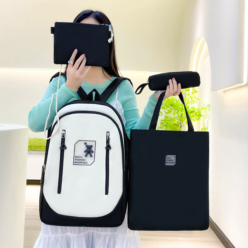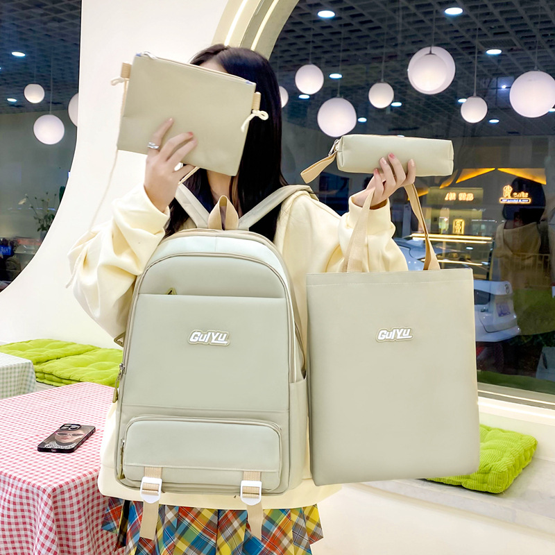 クロスボーダーシンプル学生カバン2024新型女性大容量カジュアルリュックサック4点セットリュックサック補習カバン