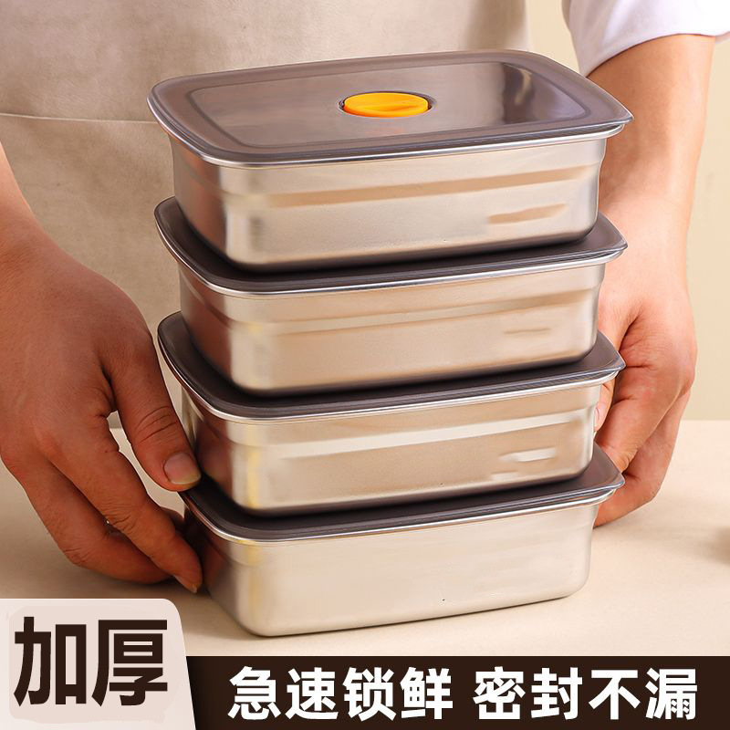 ステンレス鮮度保持ケース蓋付き昼食肉長方形食品級厚手密封果物ケース冷蔵庫収納ケース