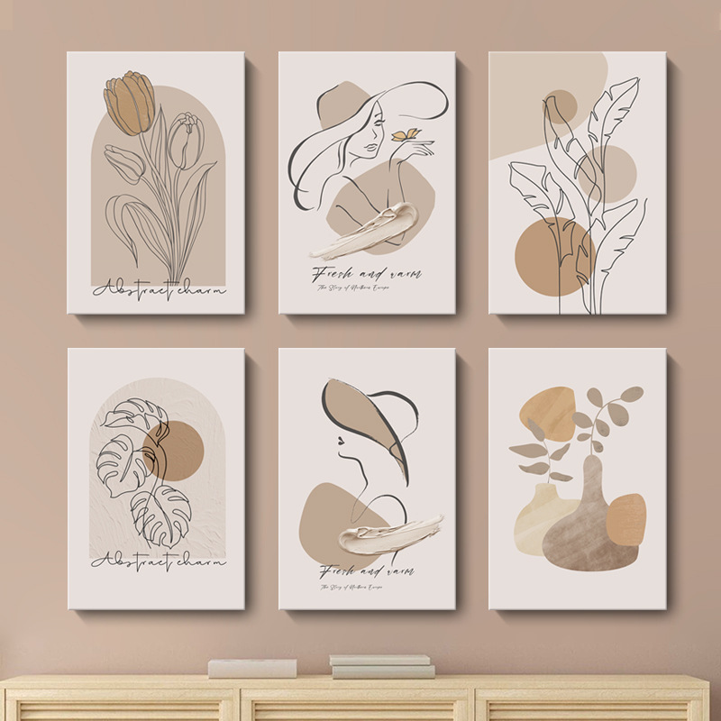 北欧原木風装飾画抽象モランディ色塊植物客間ホテルマンション民宿ソファー掛け画